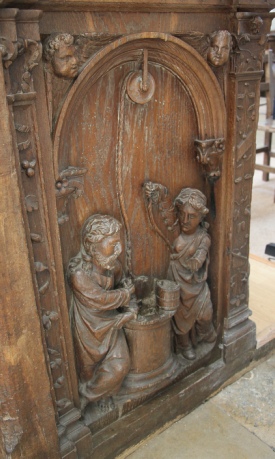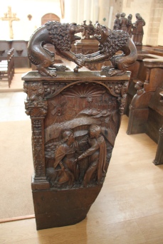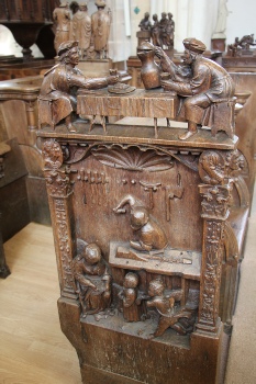 Ce qui fait surtout la renommée de la Collégiale Notre Dame de Montréal, ce sont ses 26 stalles en chêne, ses 8 bas reliefs et 5 groupes en ronde bosses, exécutés dans la première moitié du XVI° siècle par deux artisans de Nuits sur Armançon, les frères Rigolley, C'est très certainement grâce à la générosité du roi François 1° lors de son deuxième séjour à Montréal que nous les possédons.